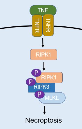 细胞死亡是生命活动的基本现象,也是维持机体稳态的重要机制1,2。依据其发生过程中的形态学变化及具体分子机制,可以将其分为凋亡(Apoptosis),坏死样凋亡(Necroptosis),焦亡(Pyroptosis),铁死亡(Ferroptosis),自噬性死亡(Autophagic cell death)等死亡方式3,4。细胞死亡在机体抵抗病原体感染中发挥重要作用,是天然免疫应答过程中的重要机制。被感染细胞的死亡对病原体感染的抑制是通过多个途径实现的:一方面,被感染细胞的死亡会使得病原体失去复制场所,直接暴露于巨噬细胞等免疫细胞,进而被这些免疫细胞识别并清除5,6;另一方面,被感染细胞的死亡伴随着细胞内容物的分泌与释放,会诱发局部免疫炎症反应,在招募炎性细胞的同时,参与激活并调控获得性免疫应答6-10。在一些非感染的自发性炎症疾病中往往伴随着细胞死亡的现象,鉴于坏死样凋亡强烈的促炎效应,它是否参与自发性炎症疾病过程?
